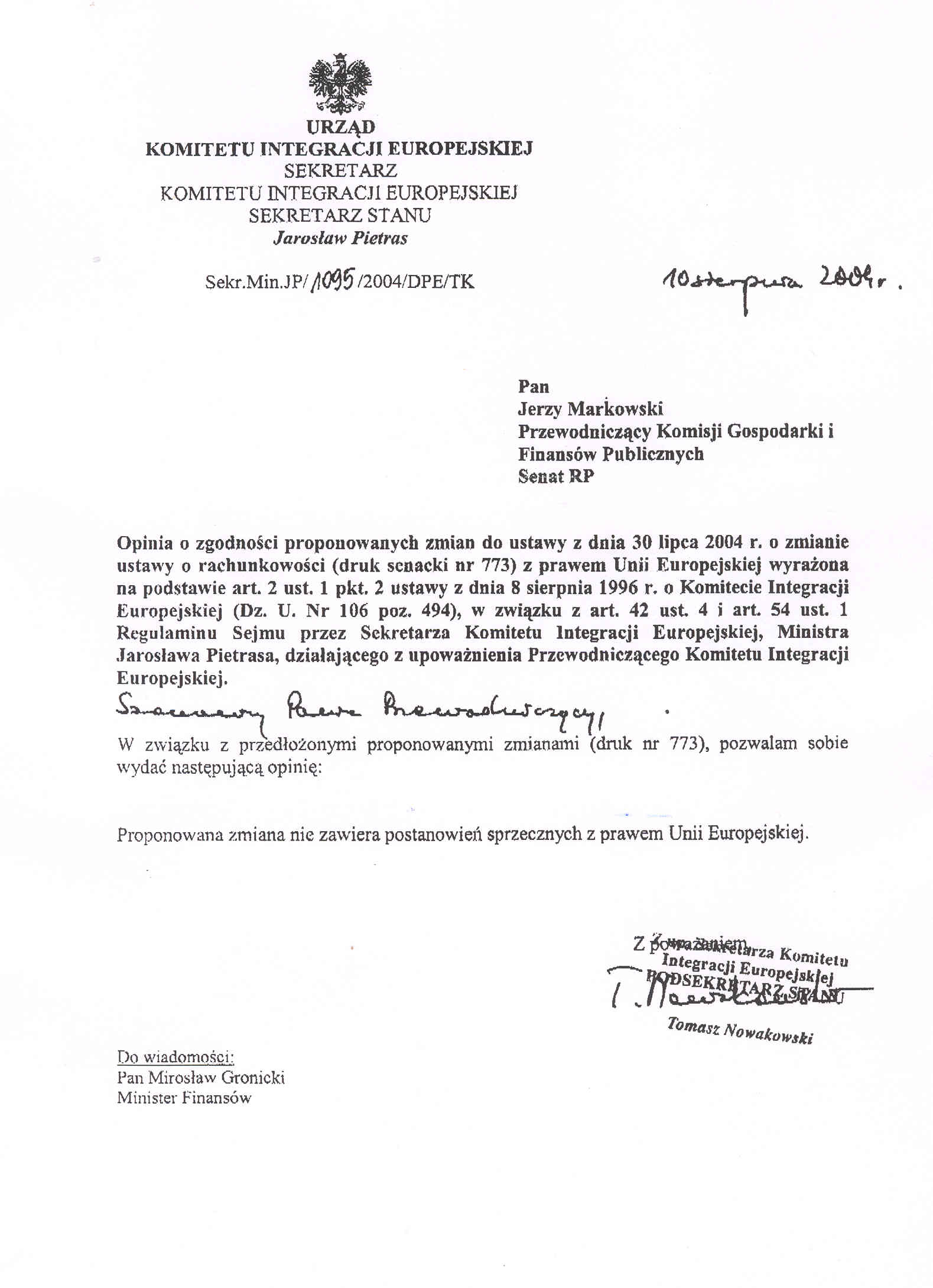 Jednocześnie upoważnia senatora Andrzeja Chronowskiego do reprezentowania stanowiska Senatu w dalszych pracach nad projektem.