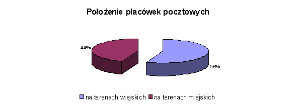 Z danych Poczty Polskiej wynika, iż od 2000 r. systematycznie spada liczba placówek pocztowych. Od 2000 do 2003 r. zmniejszono liczbę placówek na terenach wiejskich.