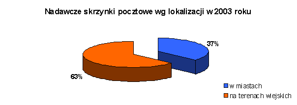 zynek pocztowych (Dz.U. Nr 177, poz. 1730).Jak wynika z danych Poczty Polskiej od 2000 r. systematycznie maleje liczba skrzynek pocztowych. Na terenach wiejskich, po przejściowym wzroście liczby skrzynek w 2001 r., systematycznie spada ich ilość. Na podstawie prezentowanych danych nie można zauważyć stałej tendencji w ilości skrzynek pocztowych na terenie miast.