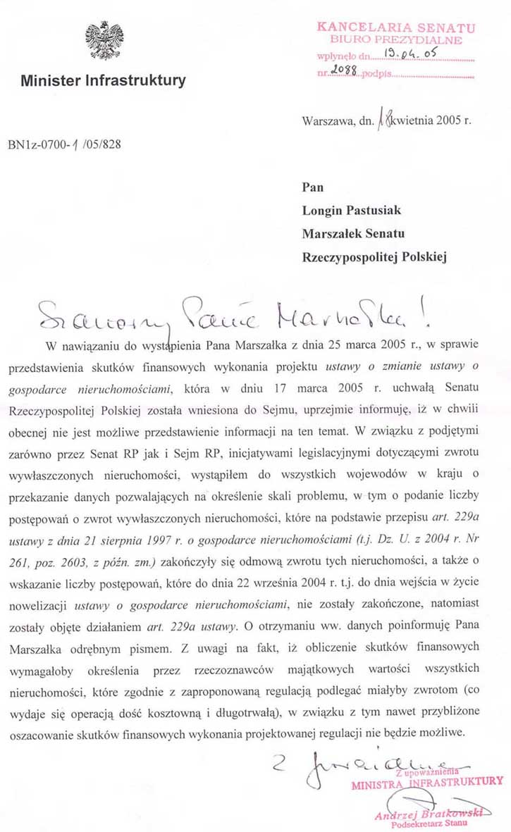 Dodatkowo, art. 15 cytowanej nowelizacji przewiduje, że do spraw wszczętych i niezakończonych do dnia wejścia w życie nowelizacji, tj. do dnia 22 września 2004 r., stosuje się nowe przepisy, niekorzystne dla właścicieli nieruchomości. Sytuacja szeregu osób, których bezpośrednio dotyczy ustawa, sprowadza się do faktu, że często pod sam koniec postępowania w drugiej instancji, po korzystnym dla nich orzeczeniu instancji pierwszej, odbiera się im prawo do dochodzenia swych roszczeń, na rzecz których ponieśli już oni znaczne koszty. Trzeba też zauważyć, że strony zainteresowane utrzymaniem obecnego stanu własności celowo przeciągały postępowanie administracyjne i sądowe, licząc na zmianę przepisów, która właśnie nastąpiła. Sytuacja ta, jak również sam sposób wprowadzenia zmian, rodzi uzasadnione podejrzenia, że sama nowelizacja mogła być wynikiem określonej akcji lobbingowej.