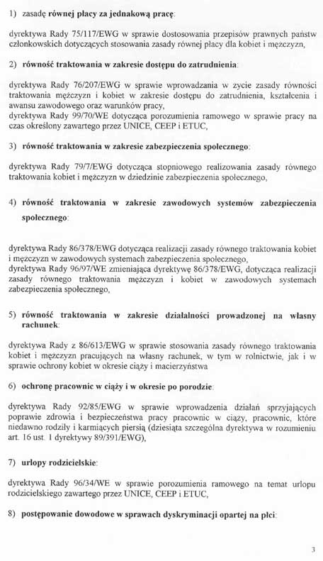 ólne uprawnienia przyznane kobietom na podstawie odrębnych przepisów, a w szczególności związane z ciążą, porodem i macierzyństwem.Art. 3.
