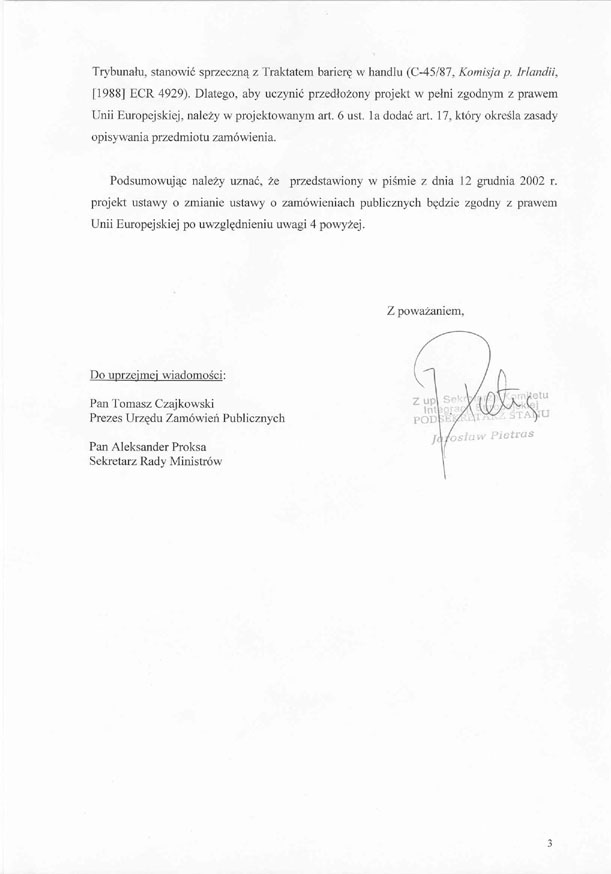 wnoszą o przyjęcie bez poprawek przedstawionego przez wnioskodawców i załączonego projektu ustawy o zmianie ustawy o zamówieniach publicznych, wraz z projektem uchwały w sprawie wniesienia do Sejmu tego projektu ustawy.W załączeniu przedstawiamy także informację o zgodności projektu ustawy z prawem Unii Europejskiej.