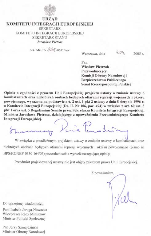 Na podstawie art. 77 ust. 1, w związku z art. 76 ust. 1 Regulaminu Senatu Komisja Obrony Narodowej i Bezpieczeństwa Publicznego wnosi o podjęcie inicjatywy ustawodawczej dotyczącej projektu ustawy o zmianie ustawy o kombatantach oraz niektórych osobach będących ofiarami represji wojennych i okresu powojennego.