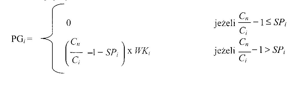 Do obliczania premii gwarancyjnej od sumy wpłat wniesionych w roku (kwartale) i-tym stosuje się następujący wzór: