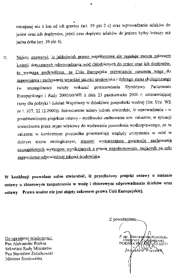 - skreślić ust. 3, który zakazuje spółkom wodnym prowadzenia działalności w zakresie uregulowanym ustawą o zbiorowym zaopatrzeniu w wodę i zbiorowym odprowadzaniu ścieków,