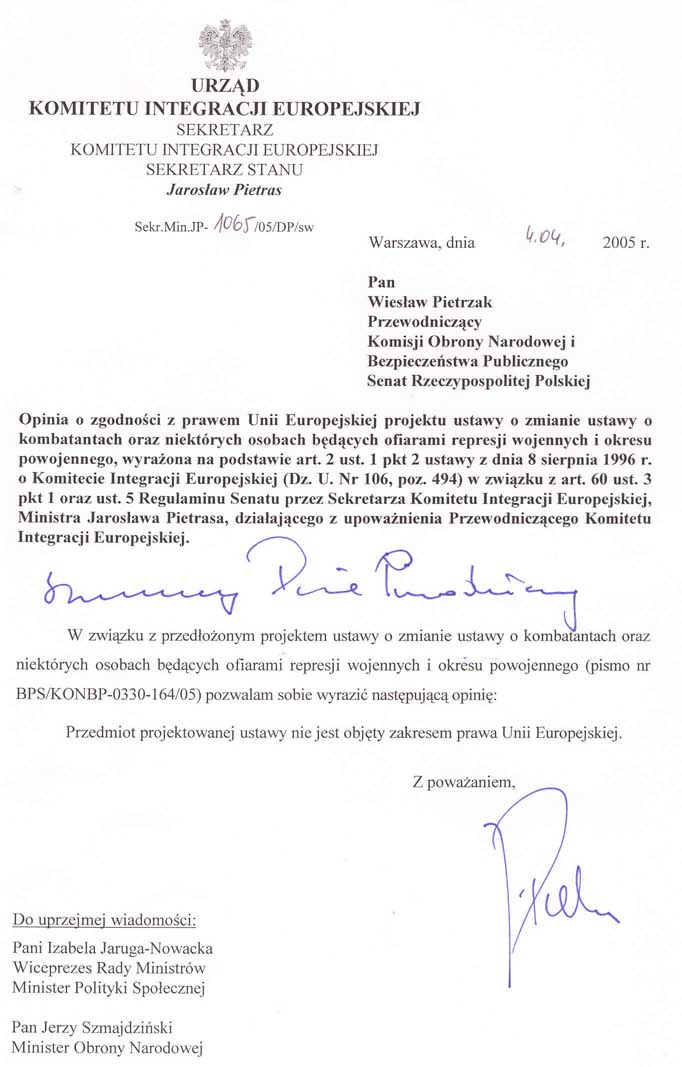 Na podstawie art. 118 ust. 1 Konstytucji Rzeczypospolitej Polskiej z dnia 2 kwietnia 1997 r., Senat wnosi do Sejmu Rzeczypospolitej Polskiej projekt ustawy o zmianie ustawy o kombatantach oraz niektórych osobach będących ofiarami represji wojennych i okresu powojennego.