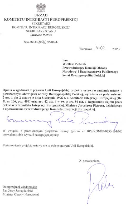 Na podstawie art. 118 ust. 1 Konstytucji Rzeczypospolitej Polskiej z dnia 2 kwietnia 1997 r., Senat wnosi do Sejmu Rzeczypospolitej Polskiej projekt ustawy o zmianie ustawy o powszechnym obowiązku obrony Rzeczypospolitej Polskiej.