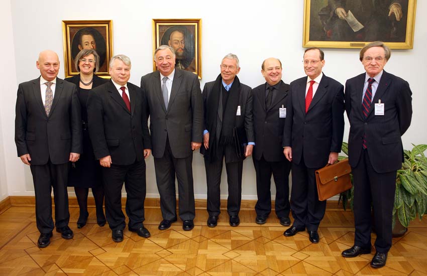 Na koniec wizyty marszałek Bogdan Borusewicz odbył prawie godzinną rozmowę z przewodniczącym Senatu Republiki Francuskiej Gerardem Larcherem, któremu towarzyszyła grupa senatorów. Marszałek Borusewicz podziękował G. Larcherowi za "gorące" słowa skierowane podczas jego przemówienia w Senacie do Polaków. Wyraził zadowolenie, że kontakty polsko-francuskie są tak intensywne a zarazem tak istotne dla Unii Europejskiej. Przewodniczący Senatu francuskiego podziękował marszałkowi Borusewiczowi za zaproszenie do złożenia wizyty w Polsce i możliwość uczestniczenia w sesji plenarnej polskiego Senatu, gdy przyjmowano uchwałę o ustanowieniu roku 2011 Rokiem Marii Skłodowskiej-Curie. W trakcie rozmowy wiele uwagi obaj politycy poświęcili funkcjonowaniu Unii Europejskiej i jej przyszłości. G. Larcher podkreślił, iż jeśli pomiędzy Francją i Polską uda się dojść do porozumienia w ważnych kwestiach to także uda się zachęcić pozostałe kraje Wspólnoty do przygotowania decyzji istotnych dla przyszłości Unii. Zdaniem przewodniczącego Senatu Francji należy do nich perspektywa finansowa na kolejne lata. System ten stał się tak skomplikowany, że nadeszła pora dyskusji o nim - podkreślił. Dodał, że kwestia ta powinna być podjęta podczas polskiej prezydencji w UE w drugiej połowie 2011 roku. Przewodniczący Senatu Francji uznał potrzebę wzmocnienia współpracy komisji obu izb. Marszałek Borusewicz poparł propozycję nawiązania ścisłej współpracy odpowiednich komisji senackich Francji i Polski a także powiedział, że istnieje potrzeba silniejszego współdziałania całych parlamentów obu krajów. Odnosząc się do sprawy związanej z perspektywą finansową UE Borusewicz podkreślił, że dla Polski istotne jest utrzymanie polityki spójności, bowiem na politykę regionalną pieniądze są wydawane najbardziej efektywnie.