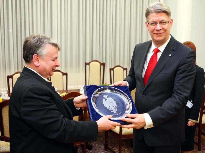 Marszałek Senatu podkreślił, że Polskę i Łotwę łączą bardzo dobre relacje dwustronne. Zaznaczył, że Łotwa jest nie tylko krajem bliskim geograficznie, ale mamy też wspólne interesy i podobne poglądy na wiele spraw. Dodał, że Polska zainteresowana jest rozwojem współpracy z Łotwą we wszystkich dziedzinach.