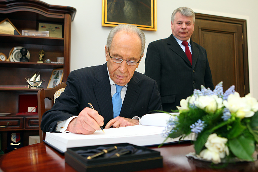 W czwartek 17 kwietnia 2008 r. wizytę w Senacie RP złożył Szymon Peres prezydent Izraela wraz z delegacją. Gości przyjął Bogdan Borusewicz marszałek Senatu. Spotkanie poprzedziło wystąpienie prezydenta Peresa przed Zgromadzeniem Posłów i Senatorów w Senacie.