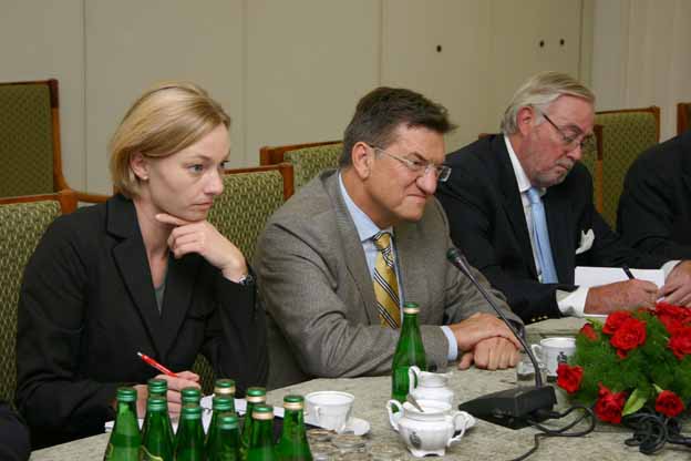 "Jestem w pełni za tym, by OBWE stało się miejscem szerokiego dialogu nt. bezpieczeństwa europejskiego" - powiedział Z. Romaszewski. Dodał, że zdaje sobie sprawę, iż dialog z krajami, które wkraczają na drogę demokracji jest trudny, bo kraje te mają inną wizję świata, hołdują innym wartości, a OBWE nie może rezygnować z pewnych pryncypiów. Dodał, że rozumie jak trudną rolę do spełnienia ma OBWE i popiera proces z Korfu, jako poszukiwanie nowych form działania. Natomiast sceptycznie, podobnie do polskiego rządu, odnosi się do propozycji powołania nowej struktury ds. bezpieczeństwa w Europie.