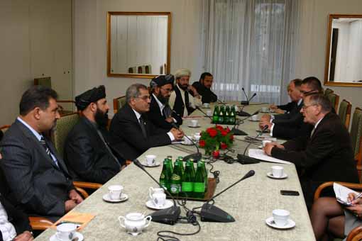Wicemarszałek Romaszewski rozpoczął spotkanie od złożenia kondolencji w związku ze śmiercią wicegubernatora Ghazni Zelawara Zahida, który zginął w zamachu. Wicemarszałek przypomniał, że polskiej walce o wolność w latach 80-tych towarzyszyła świadomość, iż opór Afganistanu wobec ZSRR przyczynił się do uratowania Polski przed interwencją ze strony tego państwa. “Nam się udało zorganizować swoje państwo, suwerenne i demokratyczne, a Afganistan do dziś krwawi. Chcielibyśmy jednak, aby i Afgańczycy mieli prawo do zorganizowania swojego niepodległego państwa” – powiedział Romaszewski. Zapewnił, że Polska dołoży starań, aby pomóc Afganistanowi w zapewnieniu bezpieczeństwa, budowaniu armii i policji oraz organizowaniu administracji.