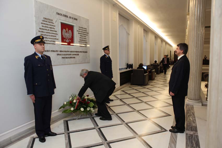 Po zakończeniu wizyty przewodniczący Zgromadzenia Narodowego Węgier Laszlo Kover w towarzystwie marszałka Senatu Bogdan Borusewicza złożył w Sejmie wiązankę kwiatów pod tablicą upamiętniającą śmierć posłów i senatorów w katastrofie lotniczej pod Smoleńskiem.