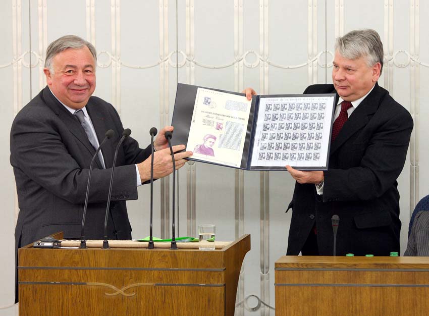 Podczas posiedzenia Senatu Gerard Larcher wygłosił przemówienie, w którym podziękował marszałkowi Bogdanowi Borusewiczowi za możliwość uczestniczenia w debacie. Podkreślił, że życie i praca Marii Skłodowskiej-Curie na zawsze połączyły Polskę i Francję. "Maria Skłodowska-Curie jest Francuzką i jest Polką. Nie musimy, jako kraje, żądać przyznania nam całości spuścizny po tej wielkiej uczonej. To dziedzictwo dzielimy wspólnie, gdyż jest ono siłą kobiety, która ciągle między nami promienieje" - powiedział szef francuskiego Senatu. Jego zdaniem, i w Warszawie i w Paryżu pielęgnowana jest pamięć o wybitnej noblistce. Gerard Larcher poinformował, że poczta francuska wypuściła jubileuszowy znaczek z wizerunkiem Marii Skłodowskiej-Curie. Dodał, że wnuczka polskiej uczonej Helena Langevin-Joliot, która bardzo chciała uczestniczyć w posiedzeniu Senatu, otwierała właśnie 27 stycznia w Paryżu obchody Międzynarodowego Roku Chemii, proklamowanego przez Zgromadzenie Narodów Zjednoczonych.