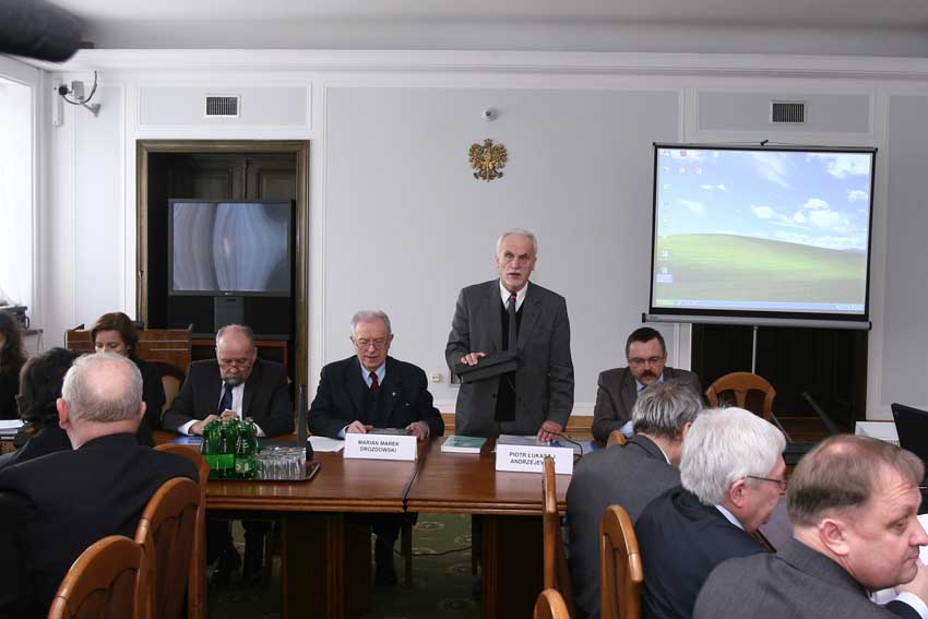 Przewodniczący Komisji Kultury i Środków Przekazu Piotr Ł.J. Andrzejewski przypomniał, że dostęp do Morza Bałtyckiego Polska odzyskała na mocy traktatu wersalskiego. Obejmowanie przyznanych jej terenów Rzeczpospolita mogła rozpocząć dopiero od 10 stycznia 1920 r. Na Pomorze wojska polskie wkroczyły 17 stycznia 1920 r., a 10 lutego dotarły do wybrzeża morskiego. Tego dnia w Pucku zorganizowano uroczystości symbolicznych zaślubin Polski z Bałtykiem. Uroczystościom nadano wielką rangę. Dowódcy Frontu Pomorskiego gen. Józefowi Hallerowi towarzyszyła dwudziestoosobowa delegacja Sejmu, przedstawiciele rządu, m.in. wicepremier Wincenty Witos, minister spraw wewnętrznych Stanisław Wojciechowski, wojewoda pomorski Maciej Rataj, kontradmirał Kazimierz Porębski oraz szef misji brytyjskiej i attaché wojenno-morski USA. Senator przypomniał również specjalną sesję Sejmu, 10 lutego 1920 r., podczas której podjęto uchwały o powołaniu Komisji Morskiej i budowie portu.