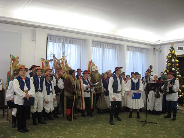 20 grudnia 2007 r. w spotkaniu opłatkowym w Senacie brali udział senatorowie, pracownicy Kancelarii Senatu oraz uczestnicy Warsztatów Terapii Zajęciowej Fundacji Pomocy Osobom Niepełnosprawnym i członkowie artystycznego Stowarzyszenia Regionalnego "Kowalnia" - obie grupy ze Stróż na Podkarpaciu - miejscowości senatora Stanisława Koguta. Na zdjęciach - artyści w strojach regionalnych (diabeł w stroju służbowym).