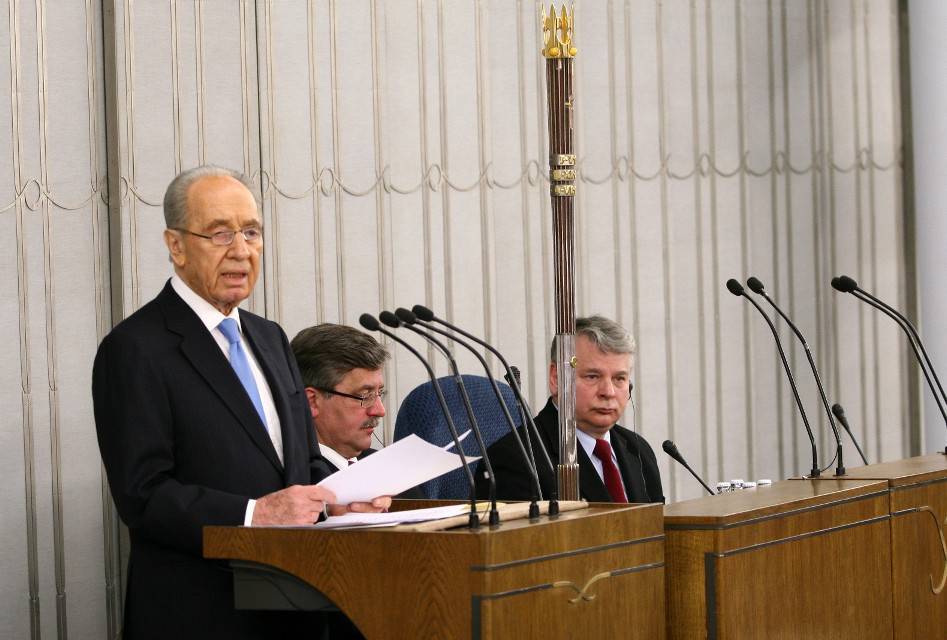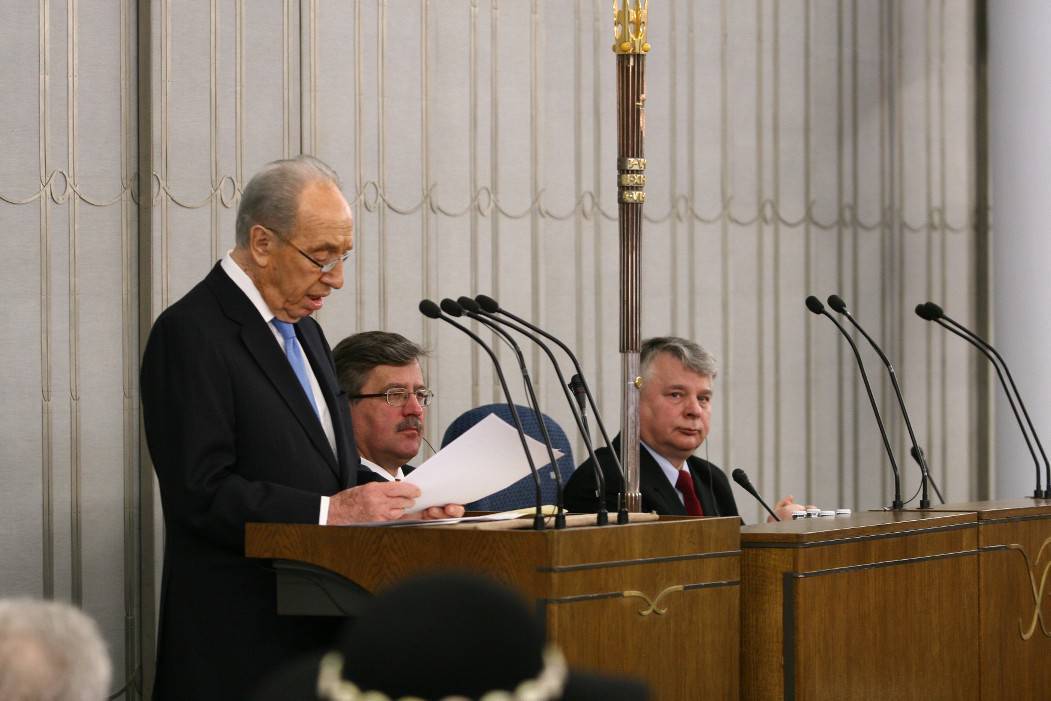 "Przybyłem z nowego Izraela do nowej Polski. Z Izraela starego jak dziesięć przykazań i nowego jak internet; do nowej Polski, wyzwolonej spod jarzma okupacji, przechodzącej proces modernizacji i włączającej się do Europy, pragnącej spełnić pozytywną rolę w życiu XXI wieku" - powiedział prezydent Izraela.