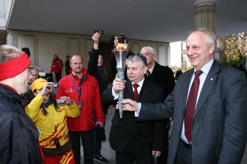 Witając sztafetę, marszałek Senatu Bogdan Borusewicz podkreślił, że przyniesiony Ogień Nadziei jest także symbolem życia, radości i zwycięstwa. Sportowcom, marszałek życzył laurów, organizatorom sztafety gratulował sukcesu w umiejętnym wspieraniu rozwoju intelektualnego i fizycznego podopiecznych.