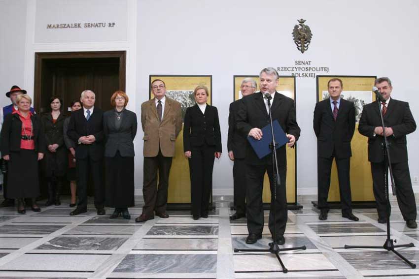 W otwarciu wystawy udział wzięli wicemarszałkowie Senatu, senatorowie, minister Szef Kancelarii Senatu, premier Jan Krzysztof Bielecki, minister edukacji Katarzyna Hall oraz goście z Kaszub i Pomorza.