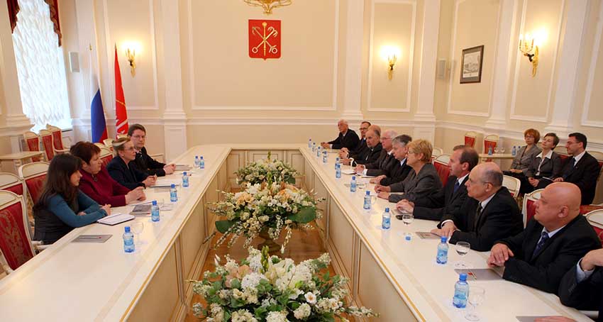 Pierwszego dnia wizyty marszałek Senatu wraz z delegacją rozmawiał z władzami miasta. Spotkał się z wicegubernatorem Petersburga Ludmiłą Kostkiną. B. Borusewicz podkreślił, że decyzja o tym, by w tym roku zorganizować obchody Dnia Polonii i Polaków za Granicą właśnie w Petersburgu, jest wyrazem dobrej współpracy polsko-rosyjskiej i podziękowaniem za stworzenie dobrych warunków dla działalności polonijnych organizacji w Rosji. Marszałek poprosił władze Petersburga m.in. o pomoc w rozbudowie Domu Polskiego oraz w opracowaniu dziejów Polaków w tym mieście po 1917 r. "Dobrze byłoby spisać historię Polaków żyjących w Petersburgu po 1917 roku. Wiem, że taka inicjatywa jest i chciałbym prosić władze miasta o wspólne działanie w tej sprawie, bo to jest część historii tego niezwykłego miasta"- powiedział B. Borusewicz.