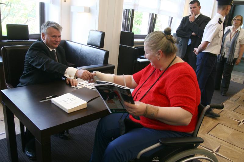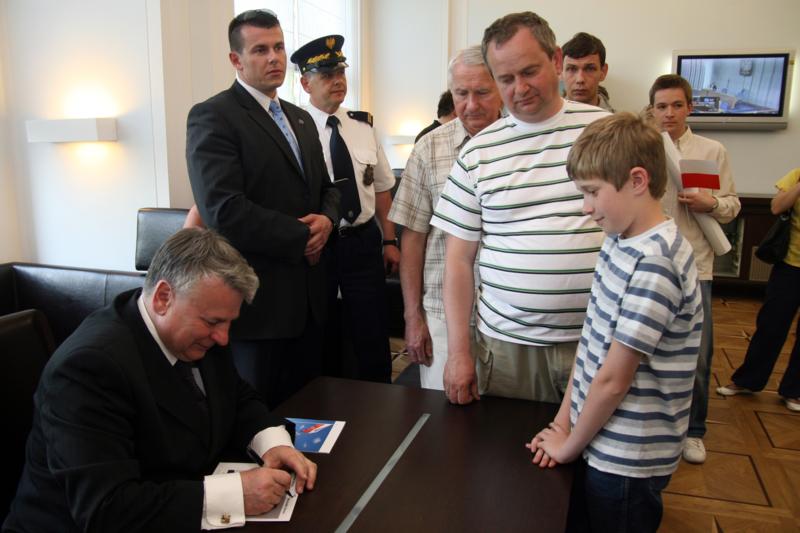 W senackim holu marszałek rozmawiał ze zwiedzającymi, podpisywał także tableau zawierające zdjęcia wszystkich senatorów.