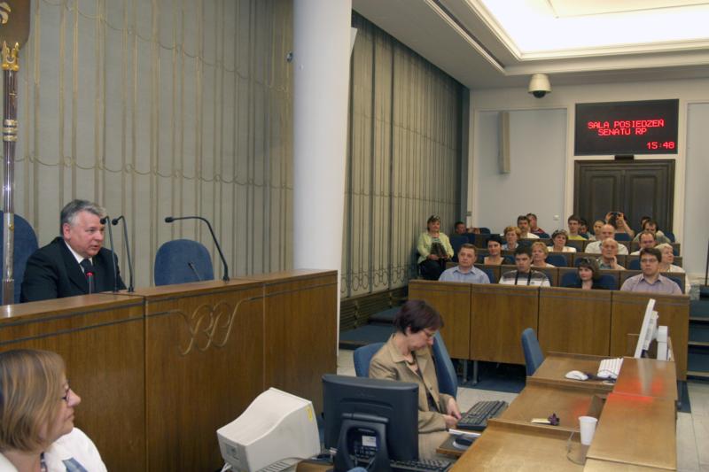 Z gośćmi Senatu spotkał się marszałek B. Borusewicz. Na sali plenarnej wcielił się w rolę senatora sprawozdawcy. "Parlamentarzyści" mogli zapoznać się z różnymi opiniami dotyczącymi wprowadzenia euro w naszym kraju. Mogli też poznać, jak żartował marszałek, plusy dodatnie i plusy ujemne tej operacji. W głosowaniu, przeprowadzonym zgodnie z senackimi procedurami, zwiedzający w większości poparli przyłączenie Polski do strefy euro.