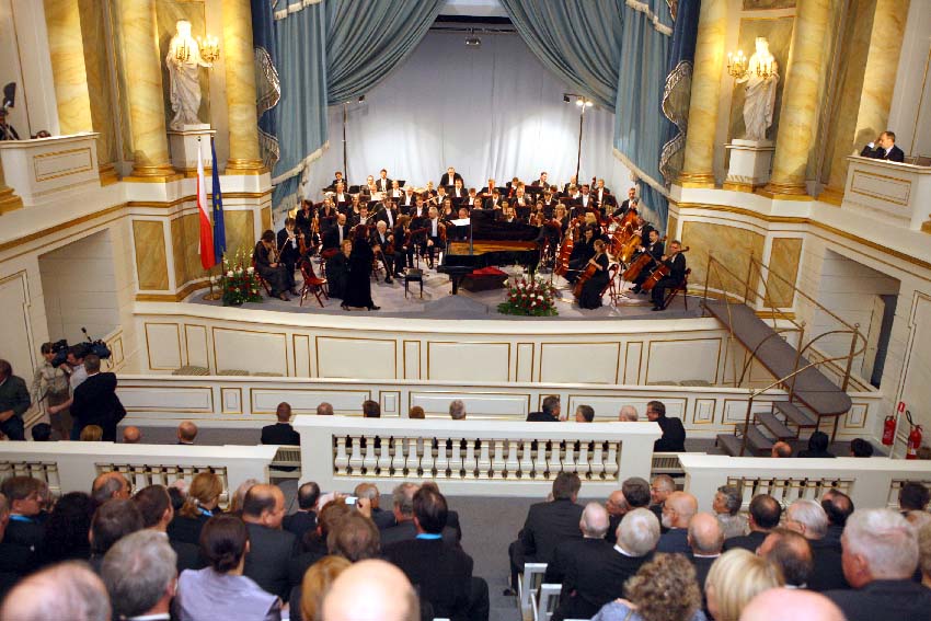 Witając gości, marszałek B. Komorowski powiedział m.in., że zgromadzeni będą słuchać koncertu w bardzo nietypowym towarzystwie. "Będą kryminaliści obok dyplomatów, rewolucjoniści obok państwowych urzędników" - żartował. Życzył wszystkim, aby "w tej muzyce, która jest cząstką polskiej duszy" usłyszeli "przyjazne i radosne nuty oraz takie, które pozwalają spojrzeć na Polskę od strony muzyki".