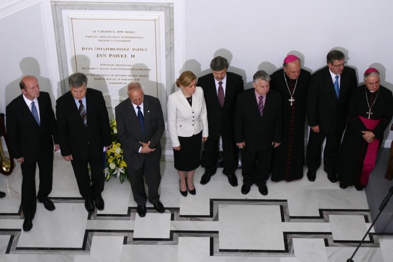 Aby uczcić tę rocznicę, w holu głównym Sejmu zebrali się marszałkowie Sejmu i Senatu Bronisław Komorowski i Bogdan Borusewicz, posłowie, ministrowie, nuncjusz apostolski abp Józef Kowalczyk i metropolita warszawski abp Kazimierz Nycz. Obecny był też Maciej Płażyński, który dziesięć lat temu był marszałkiem Sejmu i witał - wraz z marszałek Senatu Alicją Grześkowiak - Ojca Świętego.