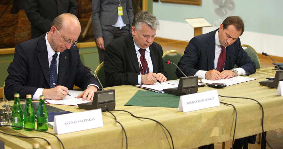 Bogdan Borusewicz marszałek Senatu witając delegacje podkreślił, że Unia Polsko-Litewska była prekursorem zjednoczenia Europy i według marszałka trójstronna formuła spotkania ma czytelny kontekst unijny. "Jeśli spotkamy się w trójkę to m.in. dlatego, że łączy nas pamięć wspólnego projektu jakim była Rzeczypospolita Obojga Narodów" - mówił marszałek. Zaznaczył, iż nie wolno zapominać, że Polska, Litwa i Ukraina sąsiadują z Białorusią. "To nasza odpowiedzialność i obowiązek" - podkreślił. Marszałek przywołał słowa Roberta Schumana, który mówił, że gdyby mógł zaczynać integrację europejską od nowa to zacząłby ją od kultury. W opinii B. Borusewicza w obszarze Partnerstwa Wschodniego proces ten już się rozpoczął, bo środowiska akademickie naszych krajów blisko ze sobą współpracują i ta współpraca powinna być wspierana środkami unijnymi. Wskazał na potrzebę istnienia wspólnego podręcznika historii.