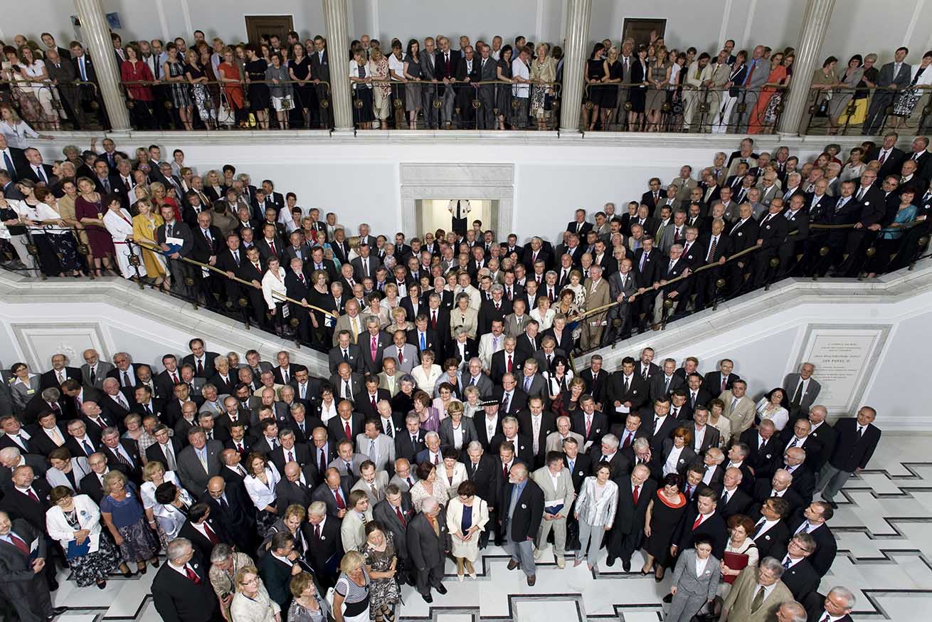 Na zakończenie uroczystości na schodach holu głównego w Sejmie uczestnicy jubileuszowego posiedzenia pozowali do pamiątkowej fotografii.