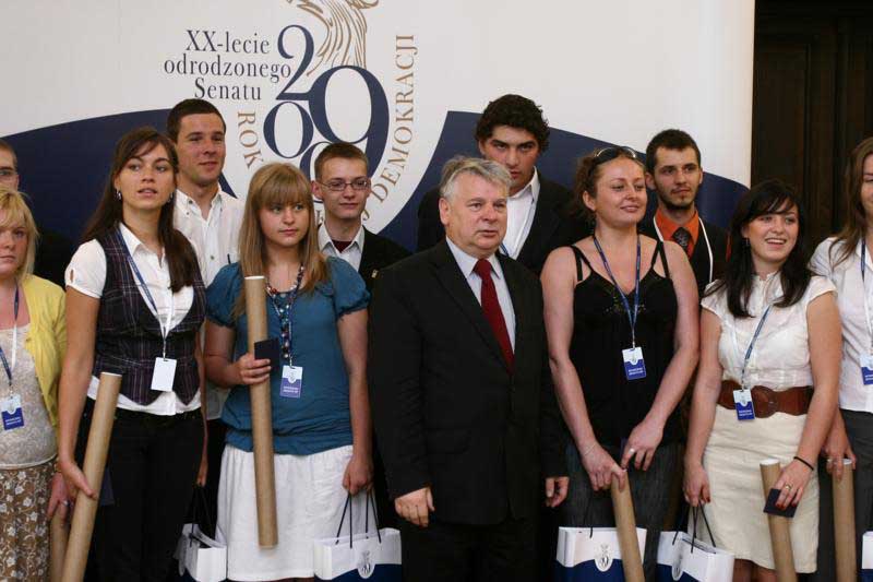 Marszałek wspominał, jak 20 lat temu Senat zebrał się pierwszy raz - po południu o godzinie 17. Posiedzenie było poświęcone wyborowi władz Senatu: marszałka Andrzeja Stelmachowskiego i trojga wicemarszałków - Zofii Kuratowskiej, Józefa Ślisza i Andrzeja Wielowieyskiego. "Z tej czwórki żyje już tylko senator Wielowieyski" - opowiadał młodym ludziom marszałek. Marszałek tłumaczył też młodym ludziom jakie są różnice między Senatem a Sejmem.