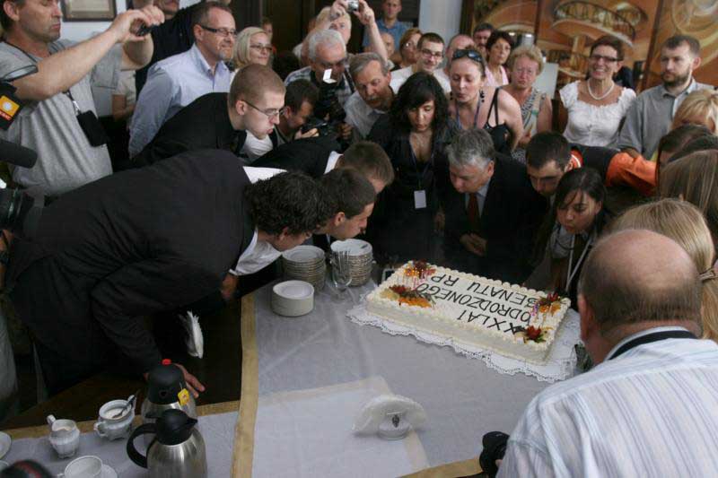 Z okazji urodzin Senatu i jego rówieśników był wielki tort. Marszałek i rówieśnicy wspólnie zdmuchnęli 20 świeczek, a w senackich ogrodach zasadzili dąb.