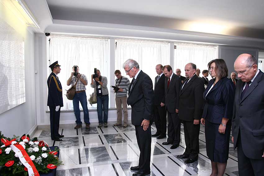 Uroczystość w Senacie poprzedziło złożenie kwiatów pod tablicą upamiętniającą senatorów II RP, którzy zginęli lub zmarli w latach II wojny światowej i w okresie powojennych represji. Wicemarszałek Senatu Marek Ziółkowski podziękował rodzinom tych senatorów za przybycie oraz współpracę i wsparcie, jakiego na co dzień udzielają Senatowi RP. "Pamiętamy o naszych poprzednikach i kontynuujemy ich pracę w stanowieniu prawa. Dzięki państwu możemy odtworzyć ich losy, które opisaliśmy w wydanej właśnie książce "SENATOROWIE zamordowani, zaginieni, zmarli w latach II wojny światowej" - powiedział wicemarszałek.