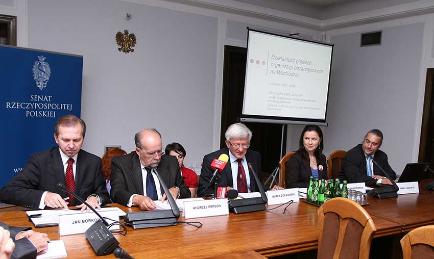 Działalność polskich organizacji społecznych na Wschodzie przedstawił Jacek Michałowski z Polsko-Amerykańskiej Fundacji Wolności. Przypomniał, że działania na Wschodzie były inicjowane 20 lat temu przez instytucje funkcjonujące w konspiracji i półjawnie, m.in. Komitet Helsiński, Solidarność Polsko-Czesko-Słowacką i Kartę. W pierwszej połowie lat dziewięćdziesiątych zaczęły powstawać organizacje, jednym z głównych celów których była współpraca ze Wschodem. Większość działa do dziś. Obecnie na Wschodzie regularnie funkcjonuje 50 polskich organizacji pozarządowych, przede wszystkim na Ukrainie, Białorusi, w Gruzji, Mołdowie, na Bałkanach i w Azji Środkowej. Organizacje te oferują zarówno pomoc rozwojową, jak i humanitarną. Środki na swoją działalność pozyskują m.in. z budżetu Ministerstwa Spraw Zagranicznych.