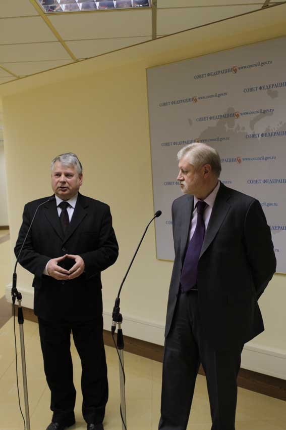 Przewodniczący Rady S.M. Mironow wyraził zadowolenie z ponownego spotkania z delegacją Senatu. Jak podkreślił "jest to już szóste spotkanie, co świadczy o intensywności kontaktów i ścisłej współpracy izb parlamentów obu krajów". Marszałek B. Borusewicz wyraził opinię, że współpraca ta jest ponadstandardowa i co najważniejsze - przynosi konkretne rezultaty, czego przykładem jest m.in. zorganizowane w Moskwie jesienią 2009 roku I Forum Regionów a także wspólny artykuł opublikowany 9 lutego br. jednocześnie w "Rosyjskoj Gaziecie" i "Gazecie Wyborczej" z przesłaniem: pamiętamy o przeszłości, myślimy o przyszłości.