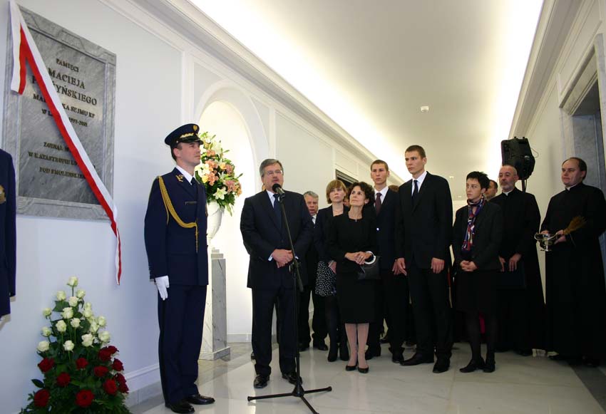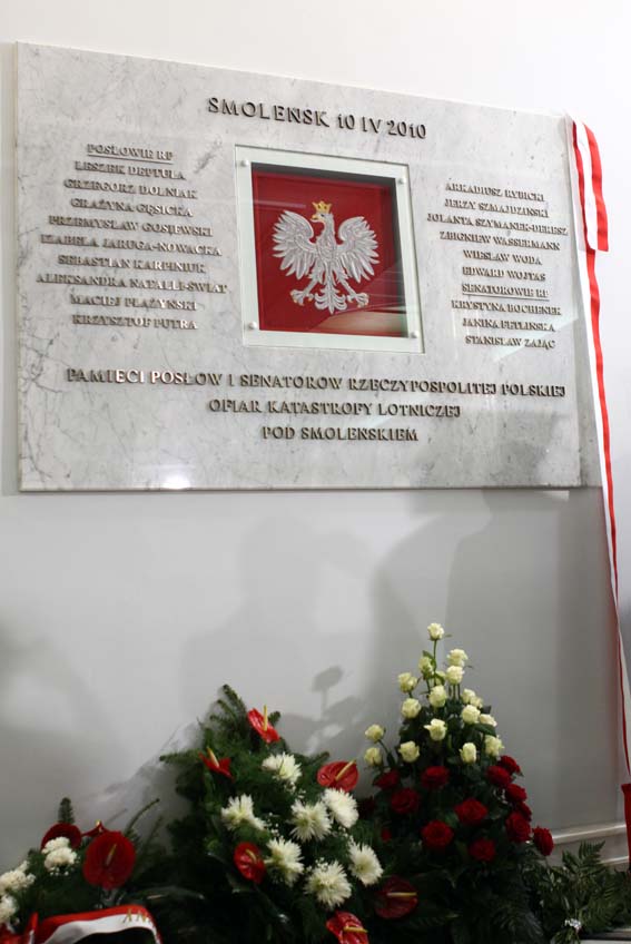 20 października 2010 r. w Sejmie odsłonięto tablicę upamiętniającą 18 parlamentarzystów, którzy zginęli 10 kwietnia w katastrofie lotniczej pod Smoleńskiem, a także tablicę poświęconą marszałkowi Sejmu III kadencji i wicemarszałkowi Senatu VI kadencji Maciejowi Płażyńskiemu.