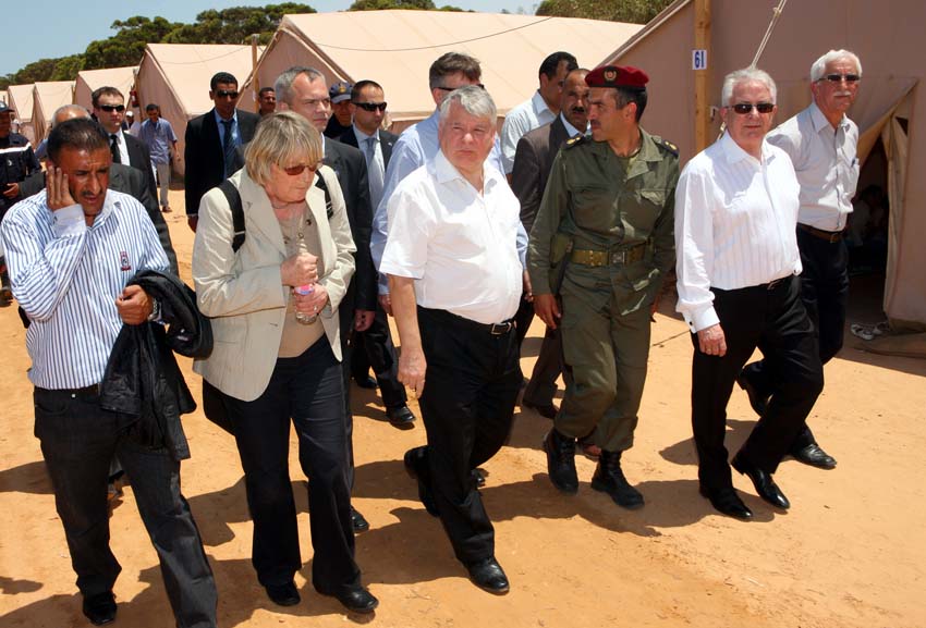 Na lotnisku w Djerba Zarzis marszałek Senatu przekazał przedstawicielowi Czerwonego Półksiężyca dr. Sofienowi Kallelemu prawie tonę pomocy humanitarnej, na co złożyły się m.in. leki, zestawy do przetaczania krwi, koce, pościel z przeznaczeniem dla uchodźców przebywających w obozach na terenie Tunezji. Następnie polska delegacja odwiedziła obozy w Choucha-Ras-Jedir oraz Szuszy, niedaleko granicy z Libią oraz spotkała się z przedstawicielem biura Wysokiego Komisarza ONZ ds. Uchodźców (UNHCR). Hovig Etyemezian poinformował, że dotychczas granicę libijsko-tunezyjską przekroczyło ponad 125 tysięcy osób. Przyjęcie przez Tunezję w krótkim czasie tak wielkiej liczby osób jest dla tego kraju dużym wyzwaniem. W obozie w Szuszy przebywa obecnie ponad 5 tysięcy osób.