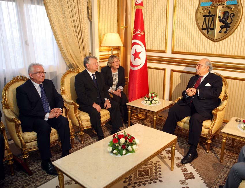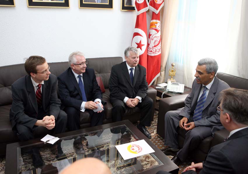 O pomocy Unii Europejskiej w procesie przemian demokratycznych oraz doświadczeniach Polski w budowie demokracji marszałek Senatu rozmawiał z tymczasowym prezydentem Tunezji Fuadem Mebazą. W rozmowie uczestniczył senator E. Wittbrodt. Zdaniem marszałka B. Borusewicza, sytuacja w Tunezji i w innych państwach Afryki Północnej wymaga pomocy ze strony Unii Europejskiej. Zapewnił prezydenta F. Mebazę, że jednym z priorytetów Polski, która 1 lipca 2011 r. obejmie przewodnictwo w Radzie UE, będzie podjęcie działań na rzecz przemian demokratycznych w krajach Afryki Północnej. "Te zmiany i konieczność wsparcia dotyczą w zasadzie całej Afryki Północnej, a także innych krajów arabskich. To, co się dzieje w Syrii, pokazuje, że zmiany te nie ograniczają się do Afryki Północnej, ale wykraczają poza to terytorium. Fala wolności przechodzi przez całą Afrykę Północną i kraje arabskie. Wiadomo, gdzie fala się zaczęła, ale nie wiadomo, gdzie się skończy. Wspieramy zmiany demokratyczne. Chcemy, żeby Tunezji udało się zbudować demokratyczne państwo" - podkreślił po spotkaniu z prezydentem Tunezji marszałek B. Borusewicz.