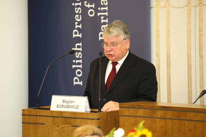 Jak mówił, w świetle obecnych wydarzeń w Tunezji, Egipcie, Libii i w innych krajach tego regionu niezmiernie ważne jest, aby Unia włączyła się w proces demokratycznej transformacji, której domagają się obywatele tych państw oraz w budowę nowoczesnych struktur państwowych. Dlatego, w ocenie marszałka, jednym z głównych wyzwań stojących przed Unią Europejską jest wspieranie krajów arabskich w budowie społeczeństwa demokratycznego, podzielenie się przez Polskę i inne kraje doświadczeniem przemian demokratycznych, budowania społeczeństwa obywatelskiego i transformacji gospodarczo-ustrojowej. W opinii marszałka B. Borusewicza, najbardziej wymownymi instrumentami, jakie Unia ma do dyspozycji, są niekwestionowana skuteczność demokracji i wolnościowego modelu rozwoju, a także oferta dostępu do rynku wewnętrznego Unii. "Nasi sąsiedzi chcą od nas czerpać najlepsze, sprawdzone wzorce. Liczą też na pomoc w zakresie budowania instytucji demokratycznych" - mówił.