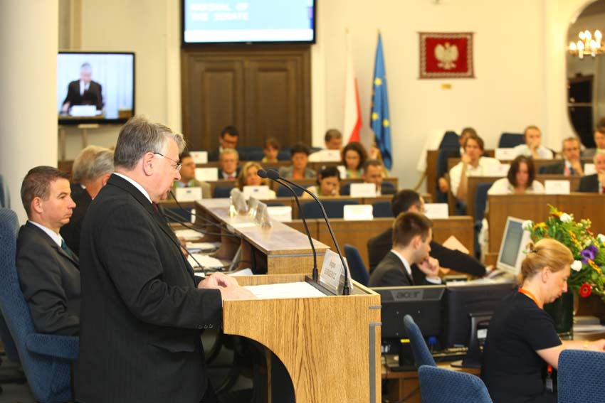 W swoim wystąpieniu podkreślił, że nowa, dynamiczna sytuacja na granicach Unii Europejskiej zmusza do zmiany podejścia do polityki sąsiedztwa, migracji i azylu. Znalazło to już odzwierciedlenie w komunikatach opublikowanych ostatnio przez Komisję Europejską. W tym kontekście marszałek Senatu wyraził opinię, że sytuacja za wschodnią granicą Unii może się okazać równie niestabilna, jak na południowym wybrzeżu Morza Śródziemnego. Przypomniał również, że na Białorusi na deficyt demokracji nałożył się kryzys finansowy i gospodarczy. "Dlatego potrzebujemy możliwie szerokiego porozumienia wszystkich krajów członkowskich w sprawie wspólnej polityki azylowej" - przekonywał marszałek Senatu.