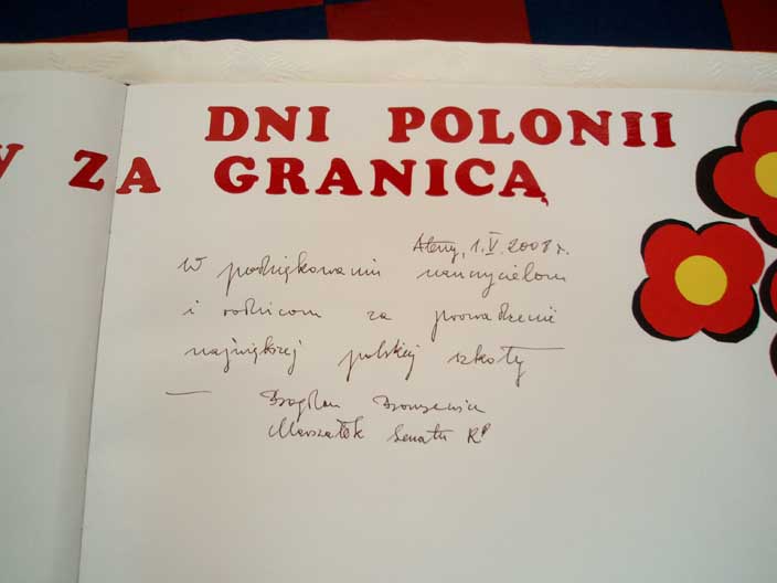Tegoroczne obchody Dnia Polonii i Polaków za Granicą odbyły się w Grecji w Atenach. Obchody święta 2 maja Marszałek Senatu rozpoczął 1 maja br. wizytą w Szkole Polskiej w Atenach im. Zygmunta Mineyki. W trakcie wizyty uczniowie szkoły zaprezentowali program artystyczny. Marszałek spotkał się z nauczycielami oraz rodzicami dzieci, obejrzał także klasy, w jakich polscy uczniowie pobierają naukę. Szkoła Polska w Atenach istnieje od 1997 roku, wcześniej w Atenach funkcjonowały niezależnie Punkt Konsultacyjny przy Ambasadzie oraz Katolicka Szkoła Polska im. Romka Strzałkowowskiego. Obecnie w szkole naukę pobiera ponad 1300 uczniów. Uczniowie podkreślali, że choć Grecja jest dla nich przyjazna to naukę na studiach wyższych chcą kontynuować w Polsce.