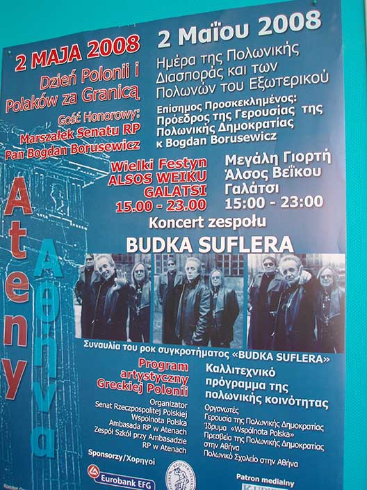 Po odegraniu hymnu polskiego, rozpoczęła się część artystyczna festynu. Na scenie kolejno prezentowały się dzieci i młodzież ze Szkoły Polskiej w Atenach a także grupa przedszkolaków. Odwiedzający festyn mogli spróbować polskich dań, zakupić książki i podręczniki, a przede wszystkim spotkać się z Marszałkiem Senatu RP oraz posłami i senatorami, którzy towarzyszyli Marszałkowi w wizycie. W festynie, wg różnych szacunków wzięło udział od kilkuset do kilku tysięcy ludzi. Na zakończenie festynu odbył się występ zespołu - Budka Suflera.