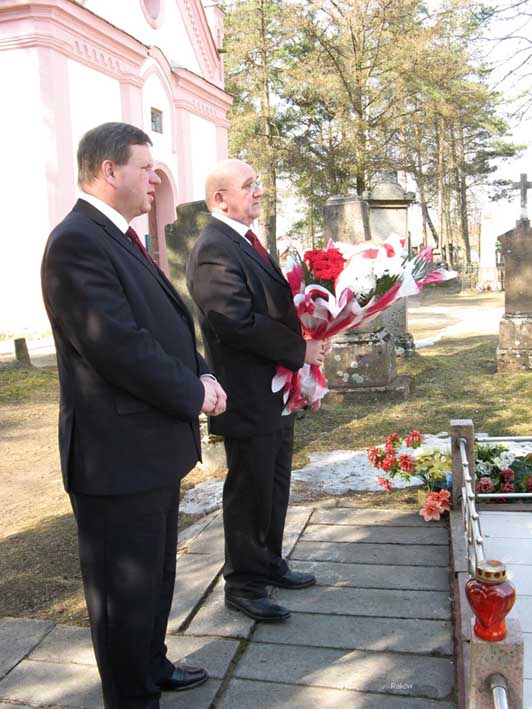Podczas wizyty senator złożył kwiaty i zapalił znicze na grobach żołnierzy Wojska Polskiego poległych w 1920 roku w Dokszycach oraz przy pomniku rozstrzelanych Polaków - ofiar hitleryzmu w Borku Berezweckim, a także na mogile powstańców styczniowych oraz grobach poległych w 1920 roku żołnierzy Wojska Polskiego w Duniłowiczach. Na lokalnym cmentarzu w Rakowie złożył kwiaty na grobach Józefy Waraksy - byłej Prezes Związku Polaków na Białorusi, Ireny Sakowiec - byłej Prezes ZPB i dyrektora Domu Polskiego w Borysowie oraz przy Krzyżu Straży Mogił Polskich wzniesionym ku czci żołnierzy Korpusu Ochrony Pogranicza, poległych w latach 1924-1944.