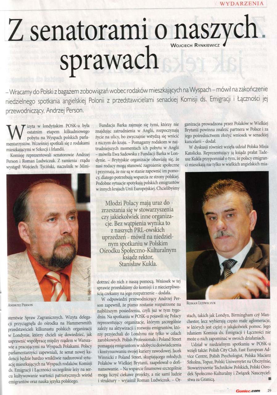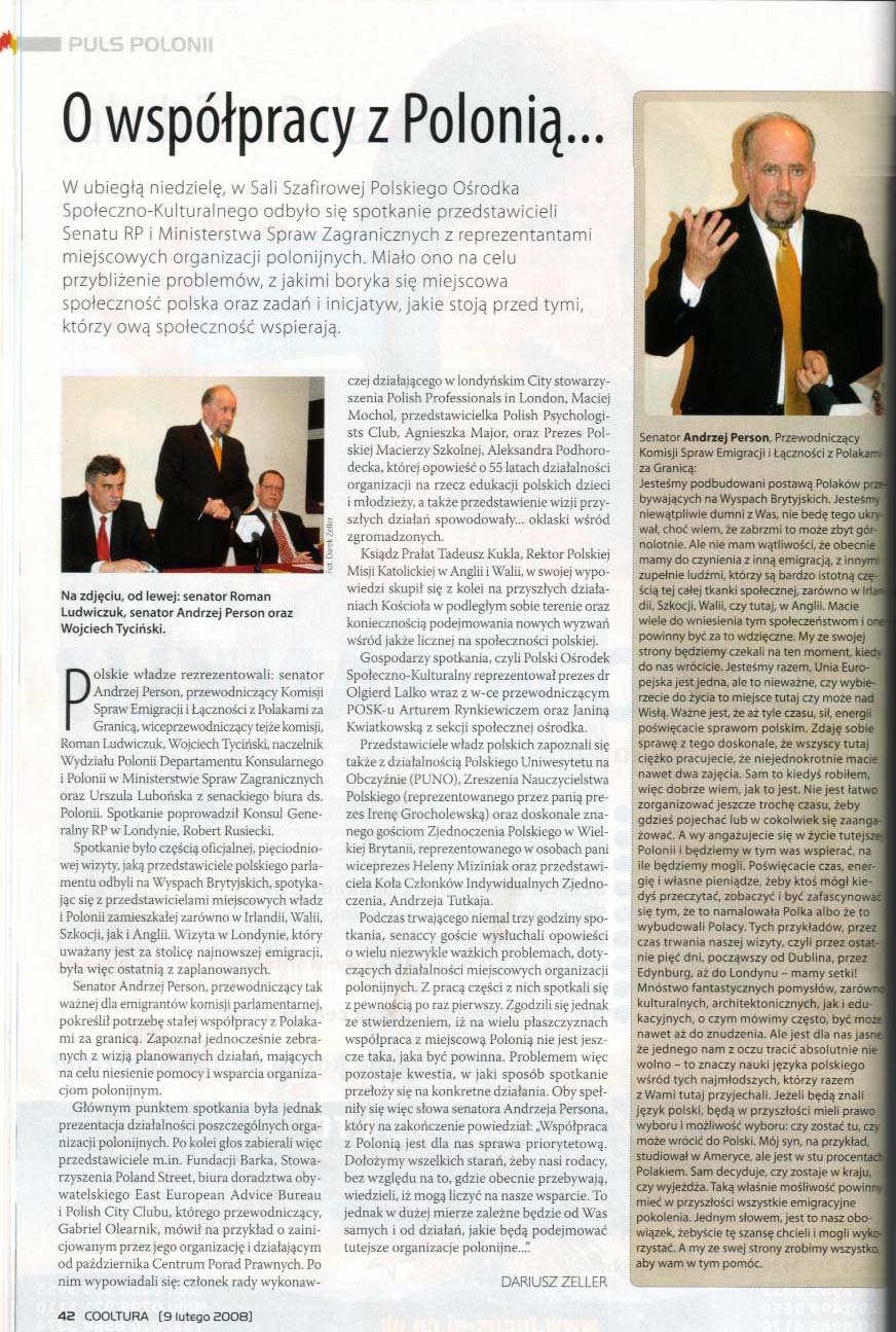 - 12-14.04.2008 r. - Wizyta wiceprzewodniczącego Komisji Spraw Emigracji i Łączności z Polakami za Granicą w Londynie